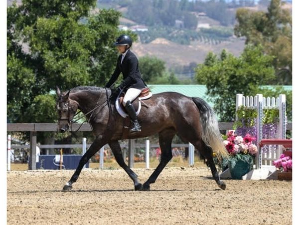 is easily a barn favorite with her kind personality and flashy looks. She has a lovely rhythmic canter with auto changes. Experience showing in the Hunter and Jumper rings with top ribbons in the 5 yr old Young Hunters as well as .95 jumpers this last summer. She is currently schooling 1.0m-1.10m at home.